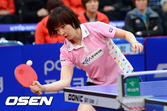 20일 오후 경기도 안양 호계체육관에서 열린 '하나은행 2012 MBC 탁구 최강전' 챔피언결정전 2차전 대한항공과 KRA 한국 마사회 단식 4번 경기에서 KRA 한국 마사회 서효원이 공격을 시도하고 있다.