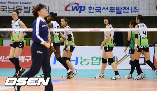 경기종료 후 GS칼텍스 선수들이 아쉬워하고 있다. /soul1014@osen.co.kr