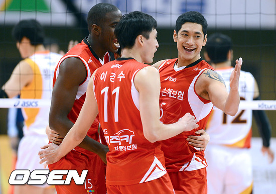 '2012-2013 NH농협 V-리그' 남자부 KEPCO와 LIG손해보험과의 경기가 20일 오후 경기 수원시 수원실내체육관에서 열렸다.