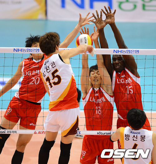 '2012-2013 NH농협 V-리그' 남자부 KEPCO와 LIG손해보험과의 경기가 20일 오후 경기 수원시 수원실내체육관에서 열렸다.