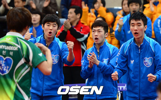 단식 5번 경기 삼성생명 서현덕이 득점을 올리고 동료들과 기뻐하고 있다. / youngrae@osen.co.kr