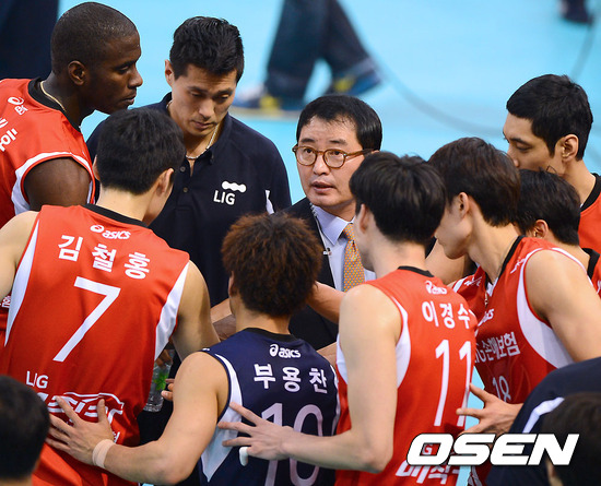 3세트 작전타임때 LIG 이경석 감독이 선수들에게 작전 지시를 하고 있다. /soul1014@osen.co.kr