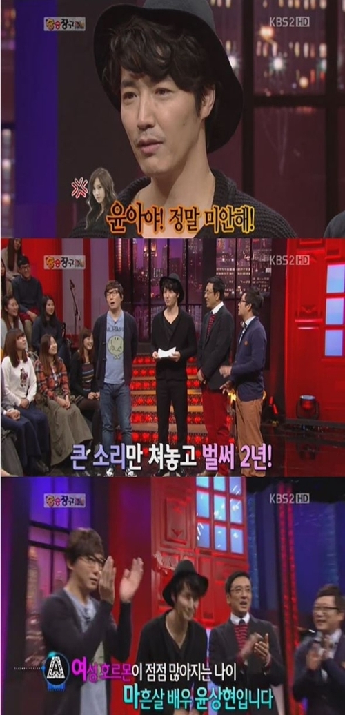 윤상현은 20일 오후 11시 20분 방송된 KBS 2TV '승승장구' 오프닝에서 윤아에게 "윤아야 미안해"라며 사과를 했다.