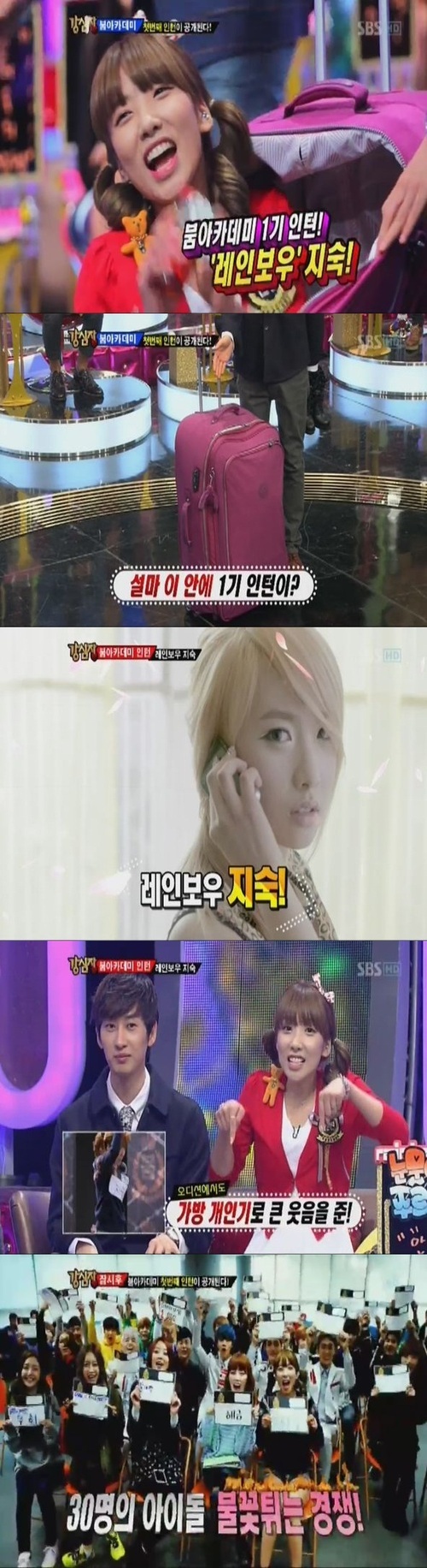 그룹 레인보우의 지숙이 군에 입대한 이특을 대신해 SBS '강심장'의 첫 인턴으로 자리했다.