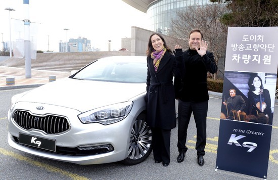 기아자동차는 공연을 위해 내한한 독일 ‘도이치 방송교향악단’의 지휘자 ‘카렐 마크 시숑’과 바이올리니스트 ‘비비아네 하그너’에게 의전차량으로 ‘K9’ 2대를 제공한다.