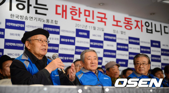 오른쪽부터 한연노 지지 선언을 밝힌 이순재, 송재호 등 원로 연기자들