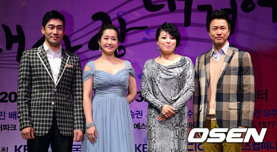 21일 오후 서울 플라자 호텔에서 진행된 뮤지컬 '내사랑 내곁에' 제작발표회에서 박송권, 배해선, 홍지민, 김정민이 포토타임을 갖고 있다.