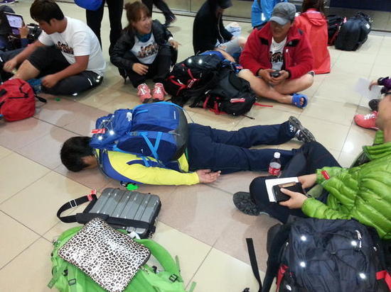 김병만은 21일 오후 자신의 트위터에 "촬영하고 돌아오는 날 잠시 잠들었었다"는 글과 함께 사진 한 장을 게재했다.