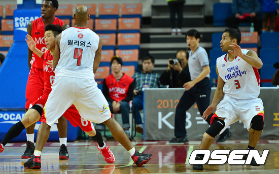 2쿼터 모비스 양동근이 오리온스 전태풍을 수비하다 윌리엄스의 스크린에 막혀 있다.