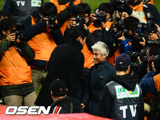 21일 오후 서울 마포구 성산동 서울월드컵경기장에서 열린 '현대오일뱅크 K리그 2012 41라운드' FC 서울과 제주 유나이티드와의 경기, 제주 박경훈 감독과 서울 최용수 감독이 악수를 나누고 있다.