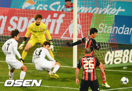21일 오후 서울 마포구 성산동 서울월드컵경기장에서 열린 '현대오일뱅크 K리그 2012 41라운드' FC 서울과 제주 유나이티드와의 경기, 전반 FC 서울 정조국이 슛찬스를 놓치고 있다.