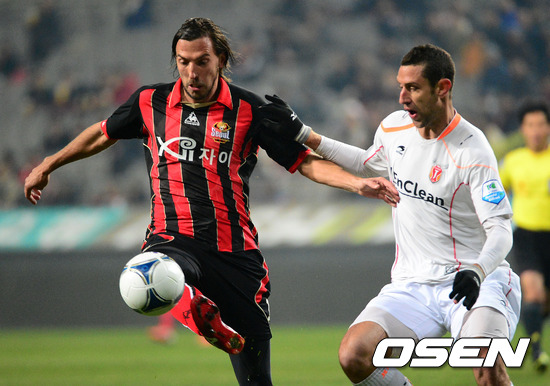 21일 오후 서울 마포구 성산동 서울월드컵경기장에서 열린 '현대오일뱅크 K리그 2012 41라운드' FC 서울과 제주 유나이티드와의 경기, 전반 서울 데얀이 볼트래핑을 하고 있다.