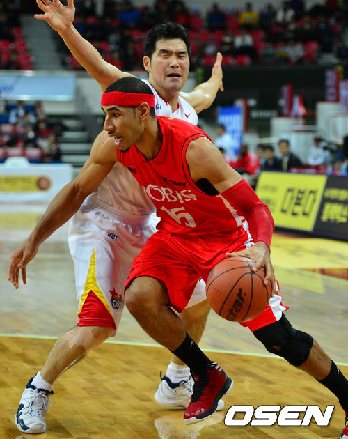 1쿼터 모비스 문태영이 오리온스 조상현의 수비를 피해 골밑 돌파를 시도하고 있다. /jpnews@osen.co.kr