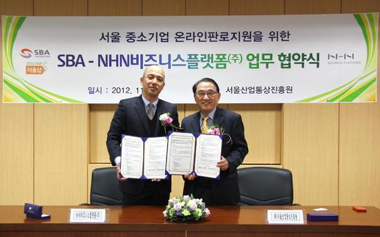 윤병준 NHN비즈니스플랫폼 윤병준 센터장(왼쪽)과 이전영 서울산업통상진흥원 이전영 대표이사.