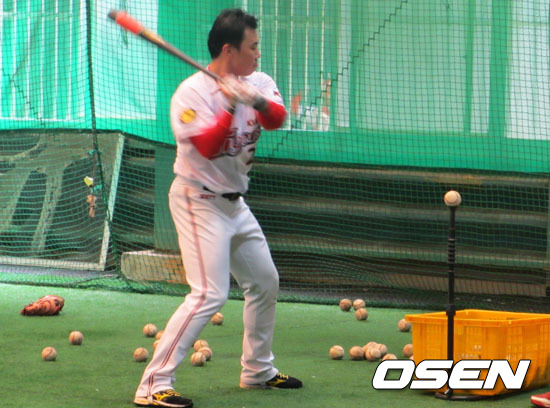 시즌때처럼 단단한 몸매였다. 지난 두 달 동안의 훈련량을 가늠할 수 있었다. 이범호는 가벼운 스트레칭을 마친 뒤 펑고를 받으며 수비훈련을 했다. 이어 티배팅을 거쳐 투수가 던져주는 프리배팅까지 모두 소화했다. 지난 7월 재활군으로 내려간 뒤 1군에 올라오지 못했고 시즌을 마치고 처음으로 하는 훈련이었다.