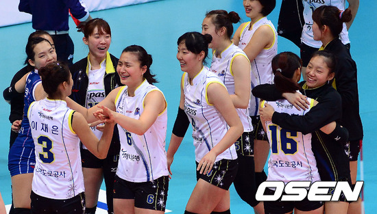 경기 종료 후 역전승을 거둔 도로공사 선수들이 기뻐하고 있다. / youngrae@osen.co.kr