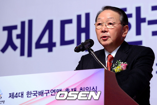 23일 오전 서울 소공동 롯데호텔에서 진행된 '제4대 한국배구연맹 총재 취임식'에서 한국배구연맹 구자준 총재가 취임사를 전하고 있다.