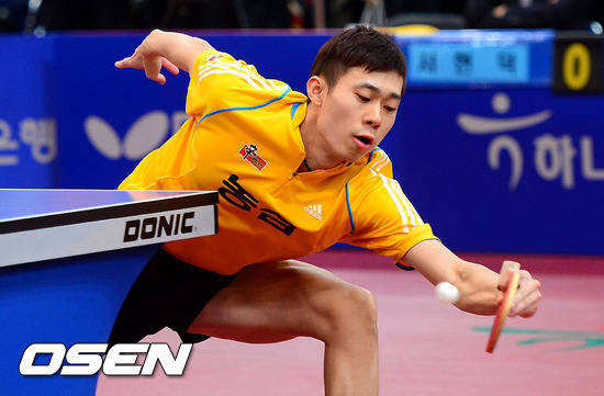 23일 오후 경기도 안양 호계체육관에서 열린 '하나은행 2012 MBC 탁구 최강전' 남녀 개인 단식 준결승전에서 농심 이정수가 깊숙한 공을 걷어 올리고 있다.