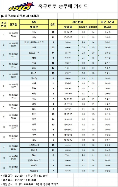 이밖에 기성용이 속해 있는 스완지시티는 리버풀을 상대로 승리 예상(32.71%)보다 패배 예상(35.41%)이 다소 높게 예상됐다. 축구토토 승무패 41회차 게임은 24일 오후 2시 50분에 발매가 마감된다.
