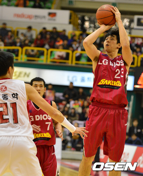 1쿼터 LG 백인선이 3점슛을 성공시키고 있다.