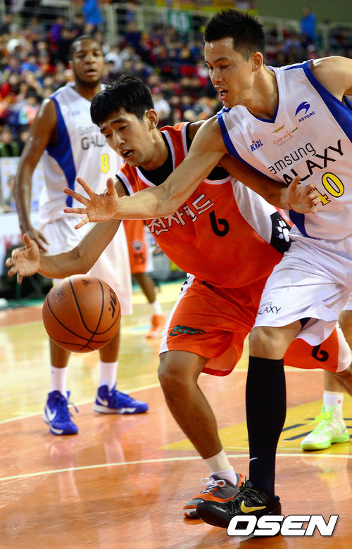 24일 오후 인천 삼산월드체육관에서 열린 'KB 국민카드 2012-2013 프로농구' 인천 전자랜드와 서울 삼성의 경기 1쿼터 전자랜드 차바위와 삼성 이동준이 루즈볼을 잡기위해 몸싸움을 벌이고 있다.