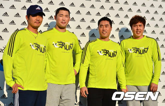 이날 참석한 롯데 이용훈, 박종윤, 조성환, 이명우가 포토타임을 하고 있다.