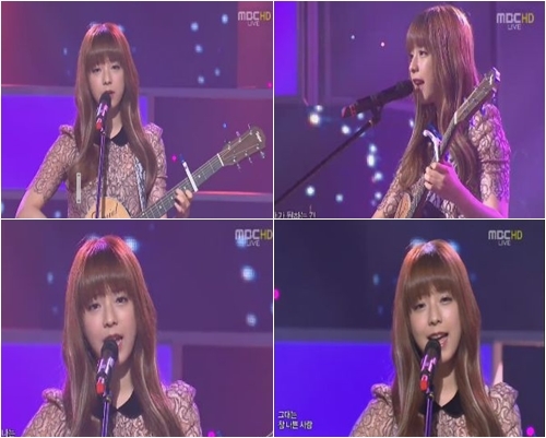 이날 단정한 패턴의 카라 원피스에 긴 생머리로 등장한 주니엘은 여리여리한 몸집에도 어쿠스틱 라이브를 흔들림 없이 해내며 업그레이드 된 노래 실력을 과시했다. 특히 청아한 목소리와 애절함을 더한 표정 연기는 깊은 울림을 선사했다.