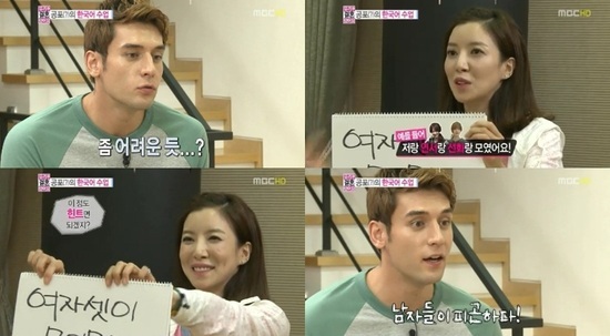 이날 방송에서 배우 윤세아는 줄리엔강의 우리말 가르치기에 나섰다. 입에 와인 코르크를 물고 정확한 발음을 하게 하는가 하면 어려운 문구를 말하게 하기도 했다.