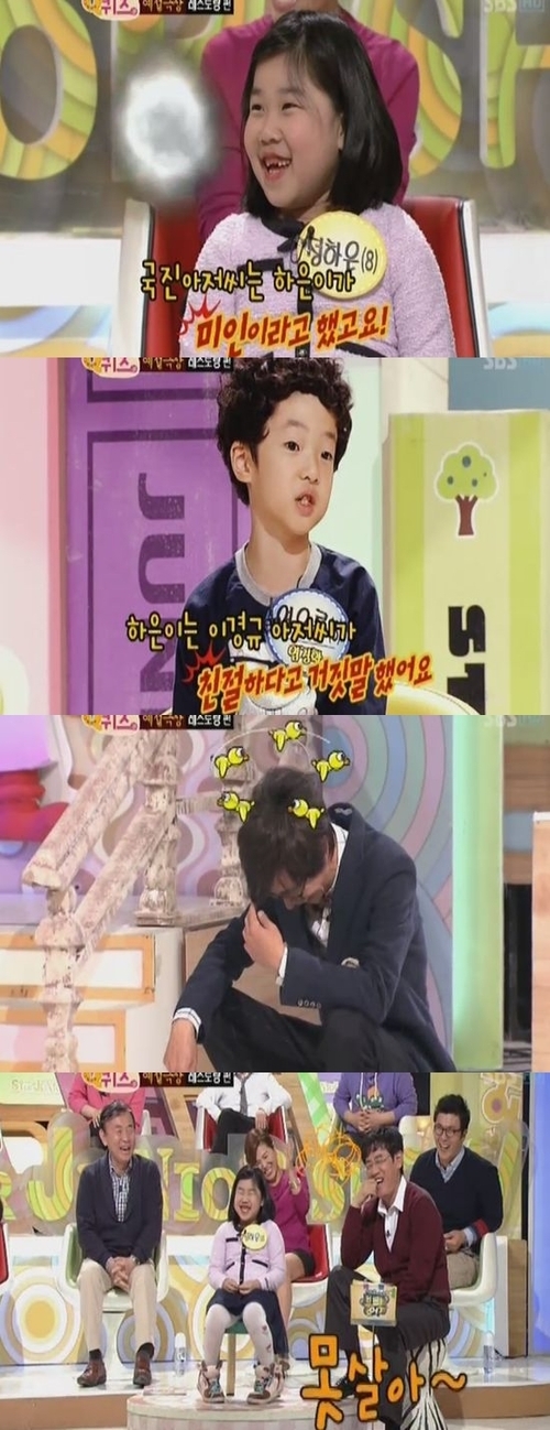 24일 방송된 SBS '스타주니어쇼 붕어빵'에서는 김국진과 정은표의 차녀 하은 양이 함께 맞선을 보는 상황극을 꾸몄다. 은률 군은 이들의 상황극 중 예절에 어긋난 상황을 맞추는 게임에서 “국진 아저씨는 하은이를 예쁘다고 했고 하은이는 이경규 아저씨에게 친절하다고 했다”며 “거짓말을 했으니까 예절에 어긋난다”고 단호히 말해 웃음을 자아냈다.