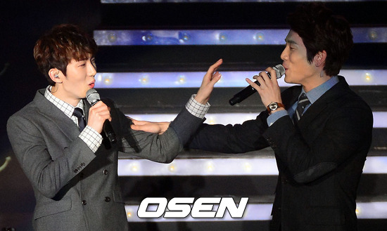 24일 오후 2AM의 콘서트 '더 웨이 오브 러브(The Way of Love)'가 서울 방이동 올림픽공원 내 올림픽홀에서 열려 2AM 조권과 창민이 토크를 하고 있다.