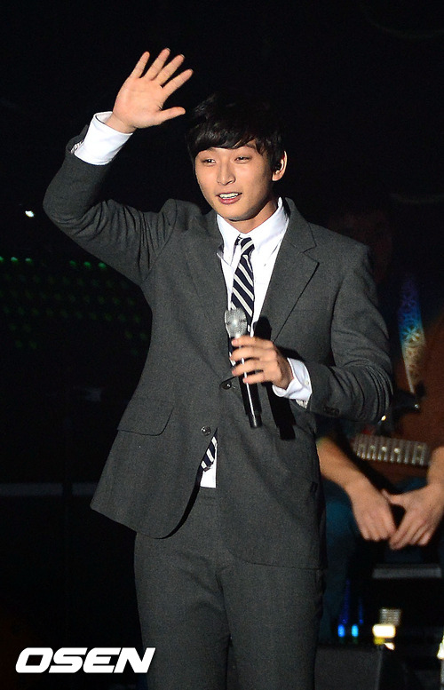 24일 오후 2AM의 콘서트 '더 웨이 오브 러브(The Way of Love)'가 서울 방이동 올림픽공원 내 올림픽홀에서 열려 2AM 진운이 팬들에게 인사를 하고 있다.