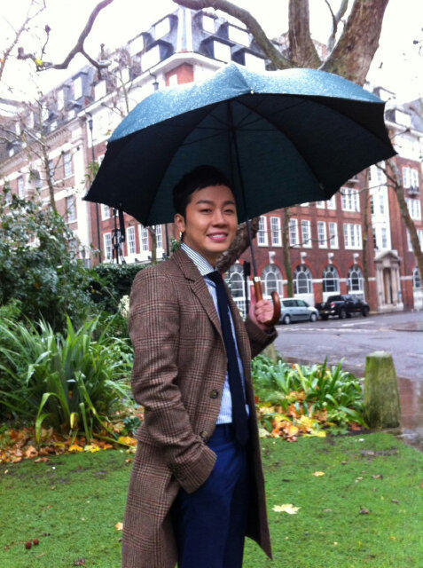 사진 속 정엽은 체크무늬의 재킷과 파란색 바지 차림을 한 채 런던 시내를 배경으로 서 있다. 우산을 들고 주머니에 손을 넣은 센스있는 포즈가 런던 신사의 분위기를 자아낸다.