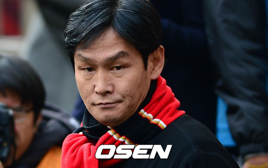 경기에 앞서 서울 최용수 감독이 그라운드를 바라보고 있다.