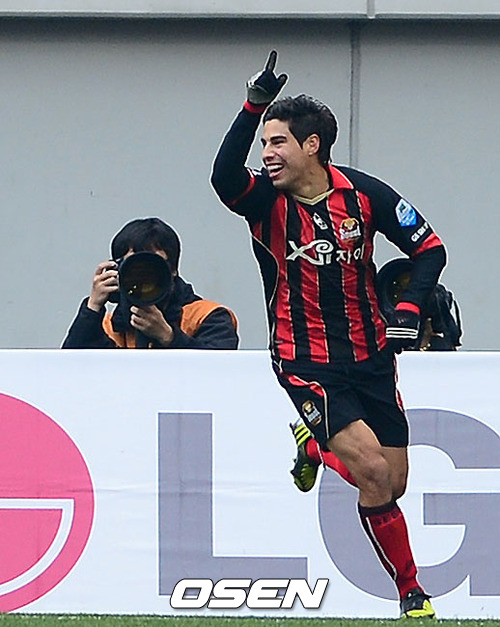 전반 서울 몰리나가 선제골을 성공시키고 환호하고 있다.