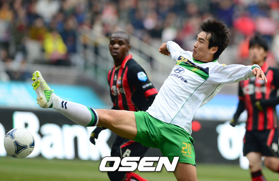 전반 전북 이동국이 슛을 시도하려 발을 뻗고 있다.