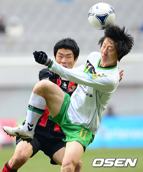 후반 서울 현영민과 전북 이승현이 볼다툼을 하고 있다.
