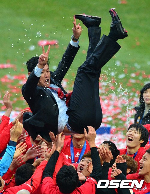 경기후 서울 최용수 감독이 우승 헹가래를 받고 있다./jpnews@osen.co.kr
