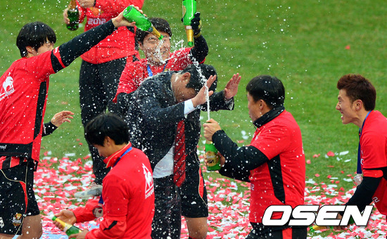 경기후 서울 최용수 감독이 샴페인 세리머니를 하고 있다./jpnews@osen.co.kr