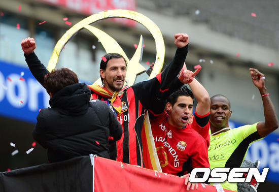 경기후 서울 데얀, 몰리나, 아디가 우승 세리머니를 펼치고 있다./sunday@osen.co.kr
