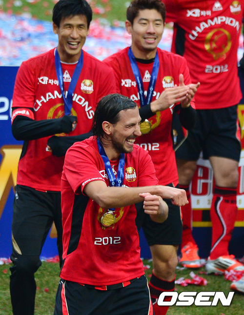 경기후 우승 세리머니에서 서울 데얀이 말춤을 추고 있다./jpnews@osen.co.kr