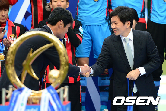 서울 최용수 감독이 정몽규 총재와 악수를 나누고 있다./sunday@osen.co.kr