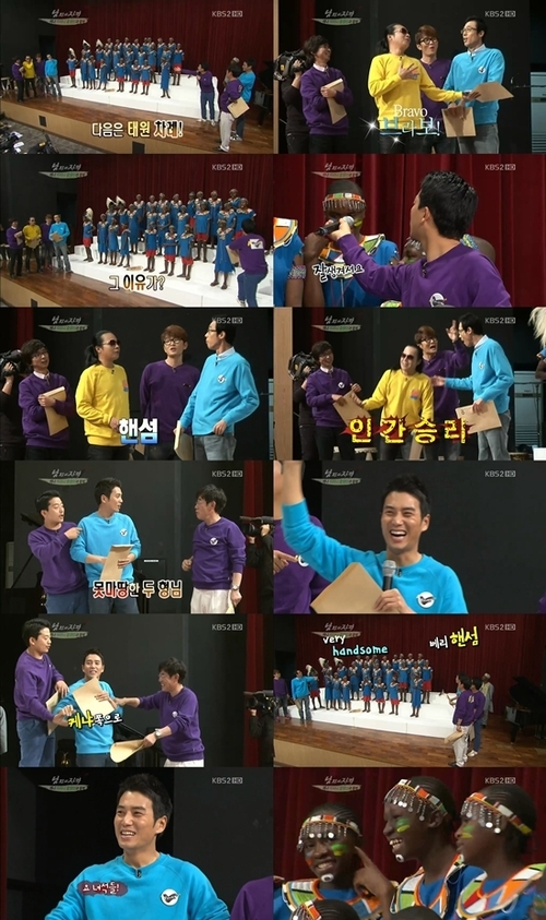 25일 오후 방송된 KBS 2TV 예능프로그램 ‘해피선데이-남자의 자격’은 부산국제합창대회를 앞두고 긴장한 ‘패밀리 합창단’을 독려하기 위해 지라니 합창단이 촬영장을 방문하는 모습이 그려졌다.