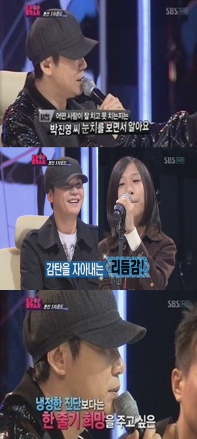 이날 양현석은 수준급으로 건반을 친 최희태 군에게도 재치있는 말을 건네 웃음을 샀다. 그는 "나는 건반을 칠 줄 모르기 때문에 옆에 있는 박진영의 눈치를 살펴야만 건반이나 기타 실력을 알 수가 있다"고 솔직하게 말했다.