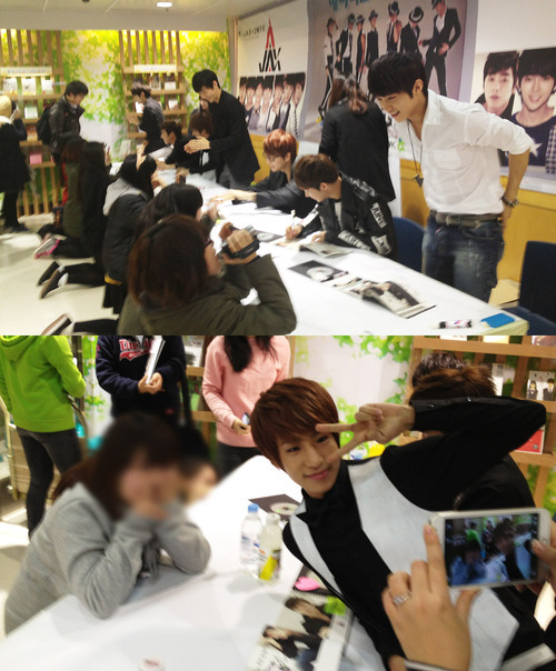 그룹 에이젝스가 미니앨범 발매 기념 팬 사인회를 열고 팬들과 즐거운 시간을 보냈다.