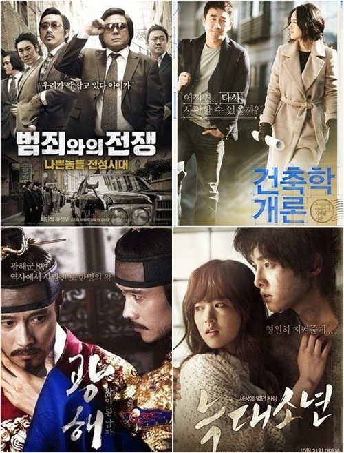지난 9월 개봉한 '광해, 왕이 된 남자'는 비수기로 일컬어지는 가을 극장가에서 올해 두 번째로 1000만 관객을 돌파하며 흥행에 성공했다. 그렇기에 '광해, 왕이 된 남자'는 여름 성수기와는 달리 가을 비수기에 개봉해 1000만을 이뤄냈다는 의미를 덧붙였다. '늑대소년'은 11월 극장가에 파란을 일으키며 600만 관객을 돌파, 역대 멜로영화 흥행 1위에 등극했다.