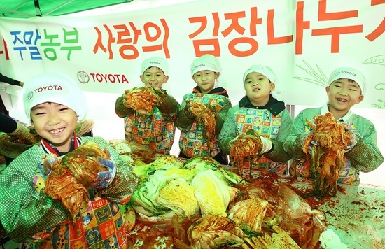 25일 토요타 주말 농부들이 직접 농사를 지어 수확한 친환경 배추로 직접 김장 김치를 담가 어려운 이웃을 돕는 나눔 행사를 열었다.