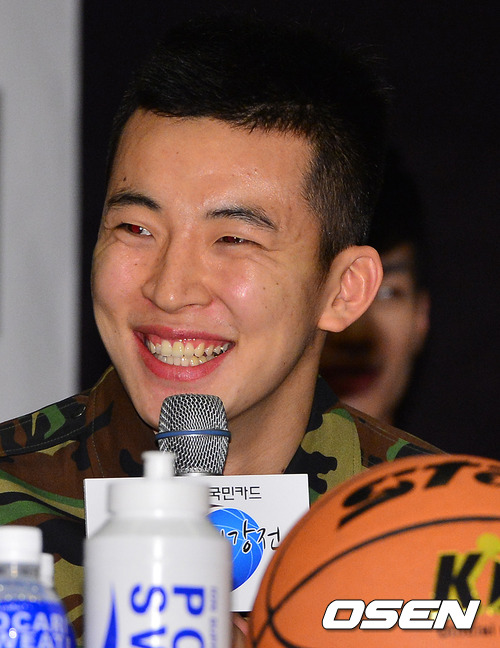 상무 강병현이 '허재 감독에게 하고싶은 말이 있냐'는 질문에 답을 하고 있다.