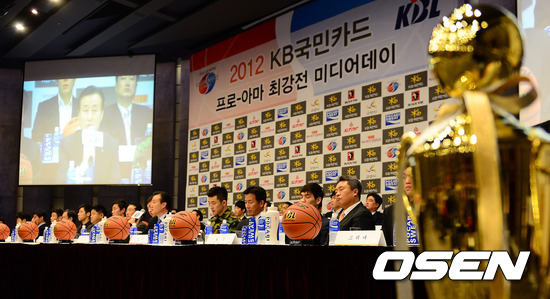 프로 10개 구단과 대학 7강, 상무 등 아마 농구의 수장들이 모두 참석한 가운데 26일 서울 소공동 웨스틴 조선호텔 그랜드볼룸에서 2012년 KB국민카드 프로-아마 최강전 미디어데이가 열렸다.