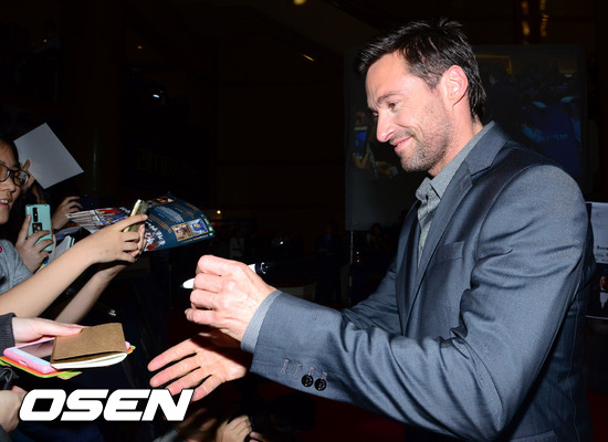 26일 오후 서울 리츠 칼튼 호텔 그랜드볼룸에서 열린 영화 '레미제라블' 내한 공식 레드카펫 행사에서 휴 잭맨이 팬들에게 사인을 해주고 있다.