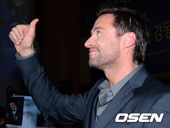 26일 오후 서울 리츠 칼튼 호텔 그랜드볼룸에서 열린 영화 '레미제라블' 내한 공식 레드카펫 행사에서 휴 잭맨이 팬들을 향해 미소짓고 있다.